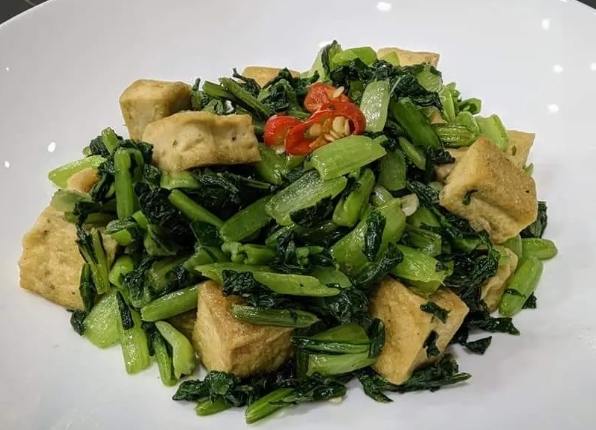 - 油菜蕃茄豆腐湯:爆香蒜片,下切塊牛番茄炒軟,加水煮滾,放板豆腐塊,最後加入油菜煮軟。簡單清爽,番茄的微酸帶出油菜的甜。