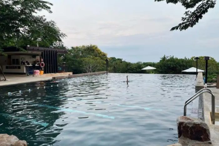 - 優點: 泳池設施不錯,尤其夏天帶小孩來玩水很適合。房間空間大,浴室也大,溫泉浴缸是石砌的,泡起來有氛圍。公共空間寬敞。早餐Buffet種類多。